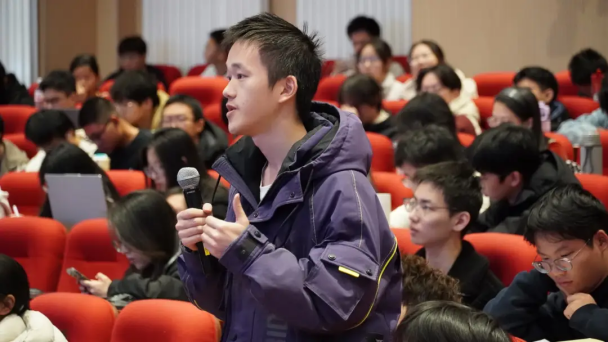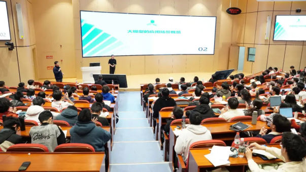 李大海校友首先从两大规律驱动大模型行业走向成熟讲起,他使用生动的案例和严谨的逻辑,使同学们对人工智能的模型有了更为直观和深刻的理解。随后,他重点为同学们描绘了未来AI的发展的趋势和面壁智能公司推动AI在生活各个方面的应用场景。整个讲座过程中,李大海校友的讲解逻辑清晰,语言生动感染力强。讲座结束后,李大海校友与现场同学亲切互动,为同学们答疑解惑。