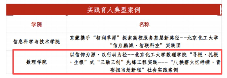 近日,北京市委教育工委公布“时代新人强国行”首都大学生主题社会实践“四个100”交流展示活动评选结果 。北京化工大学数理学院团委、学生会暑期社会实践团凭借优异的实践表现,成功获评“实践育人典型案例”与“实践育人示范共同体”两项荣誉。该实践团以“寻根·扎根·生根”为主线,在火热实践中熔铸青年担当,用脚步丈量祖国大地,交出了一份亮眼的青春答卷。